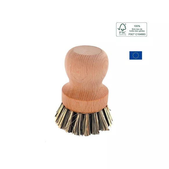 De pannenborstel wordt gebruikt om de bodem van pannen te schrapen en schoon te maken. Het is een onmisbaar accessoire voor gietijzeren kookgerei. Hij is ook geschikt voor alle andere huishoudelijke klusjes. De ergonomische handgreep zorgt voor een goede grip. FSC®-gecertificeerd beukenhouten handvat