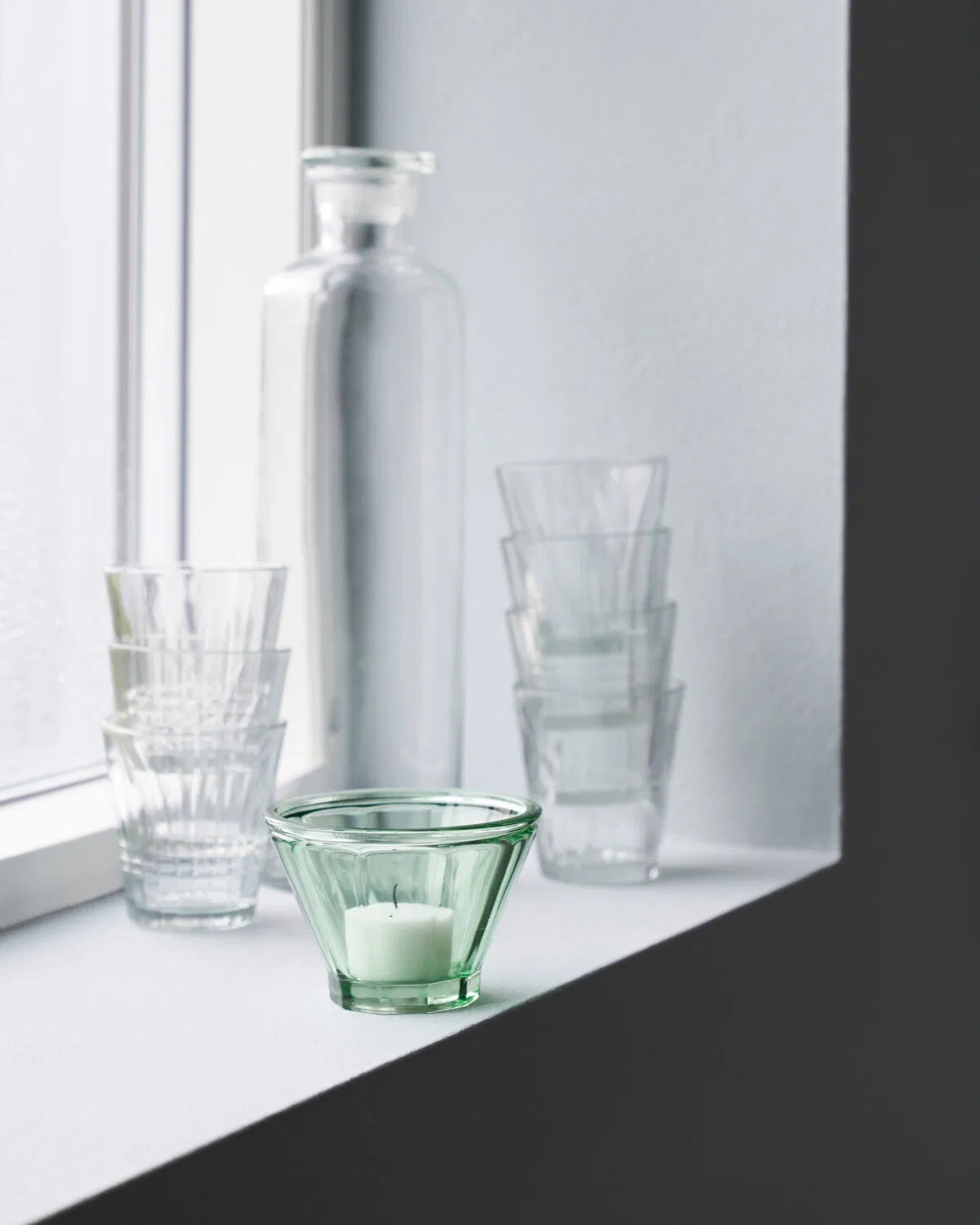 Deze kleine, handgemaakte theelichthouder genaamd Fren is geïnspireerd op vintage Franse jampotten. De charme zit hem in het geribbelde oppervlak en de verder eenvoudige uitstraling, die bij elke interieurstijl past. Hoewel het groene glas een zekere zwaarte heeft, oogt deze theelichthouder van House Doctor licht en voegt hij een subtiele kleuraccent toe aan je interieur. Voor een complete en opvallende presentatie kun je hem combineren met de grotere versie.