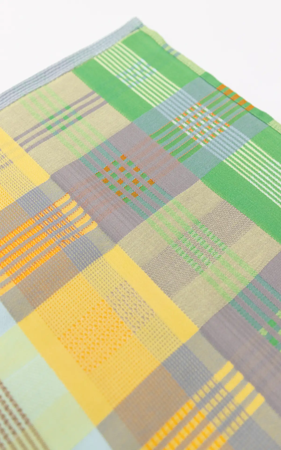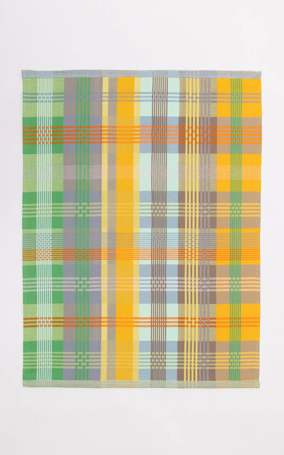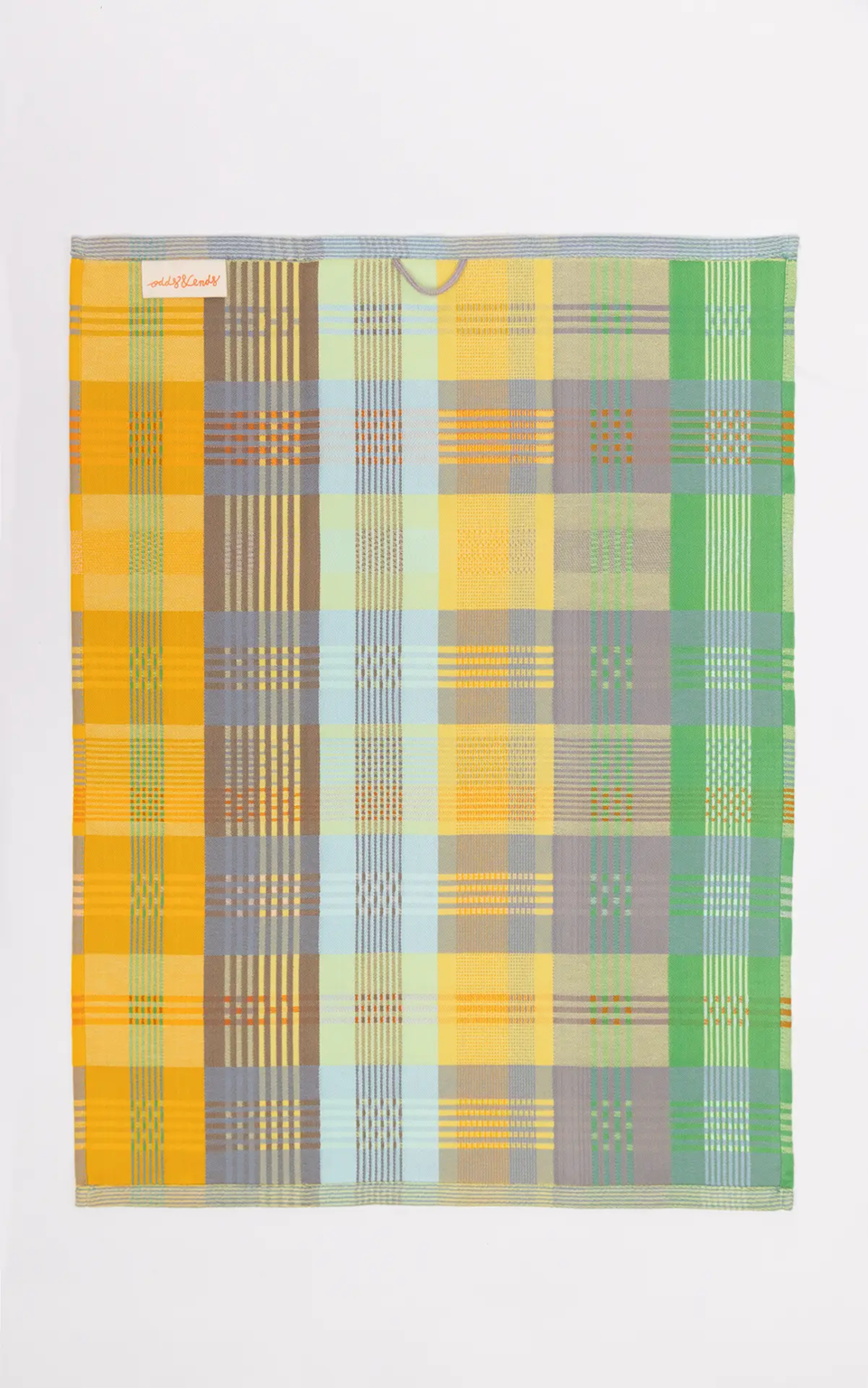 Wild weave verwijst naar het oorspronkelijke weefproces en de archetypische theedoek. In dit ontwerp komen veel verschillende kleuren op een onverwachte maar interessante manier samen.
