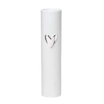 Mooi lang smal vaasje van Räder met een zilver hart. Geglazuurd aan de binnen kant en mat met een klein randje glazuur aan de buitenkant.